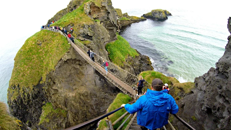 Hanging between two rocky cliffs, the Carrick-A-Rede Rope Bridge extends 100 feet above the crashing waves below. Crossing this narrow, swaying bridge is a heart-racing experience, especially for those who dare to look down and see the ancient caves and rocky formations beneath. The views are unforgettable, but the sense of exposure is genuine.