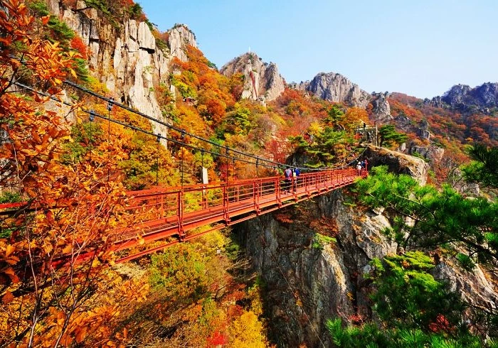 Wolchulsan National Park may be South Korea's smallest, but its Cloud Bridge is among the country's most dramatic. The bridge clings to the cliffs, offering heart-stopping views and a steep, challenging crossing. Despite its daunting reputation, the bridge draws visitors eager to conquer its heights and enjoy the stunning scenery.
