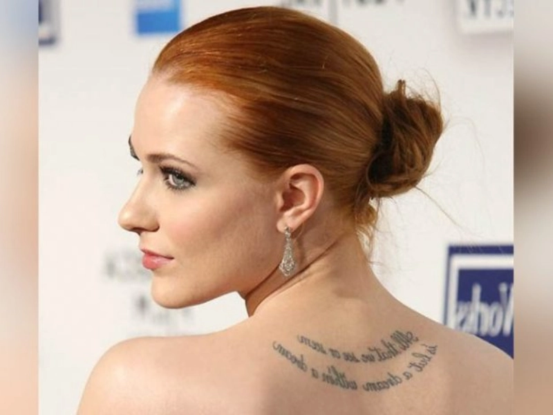 “Is all that we see or seem…” across her back explores reality’s mysteries; nine tattoos paint her artistic soul.