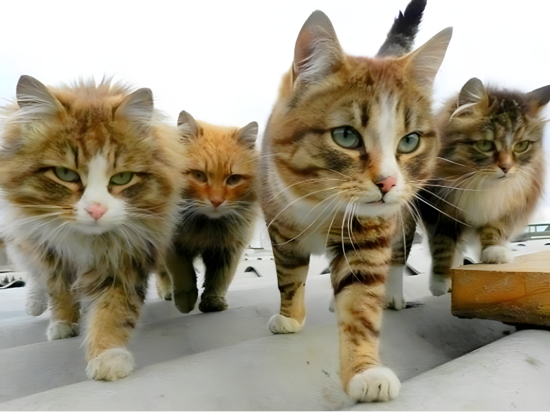 These kittens wear determined faces, clearly plotting something; surrendering the sausage might keep the peace.