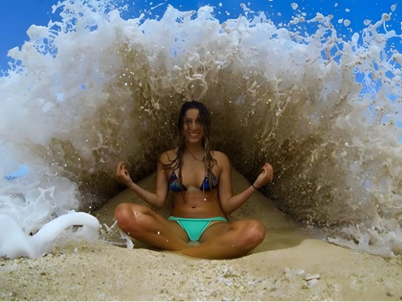 Warm sunlight, lazy waves, and carefree mischief fuse into one sun-kissed frame. An unseen prankster is seconds from turning serenity into a sandy slapstick masterpiece.